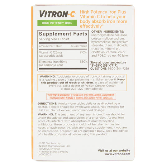 Vitron-C Iron + Vitamina C 60 Tabletas